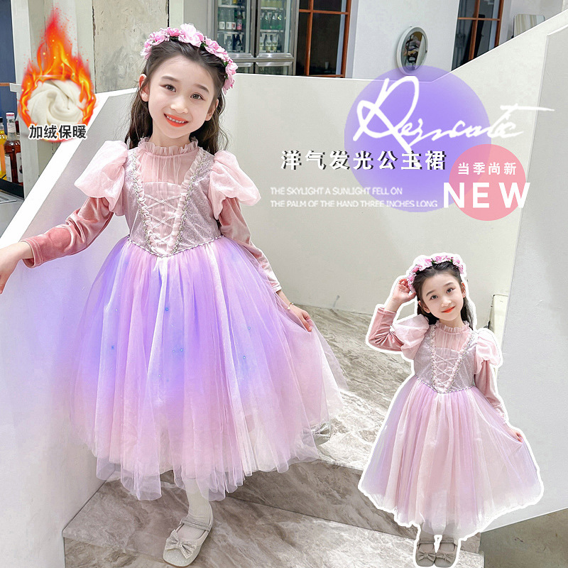 楽佩王女のスカートの女の子の秋の服の女の子の誕生日の紗のスカートは服のスカートの子供の発光のドレスのワンピースを演出します。