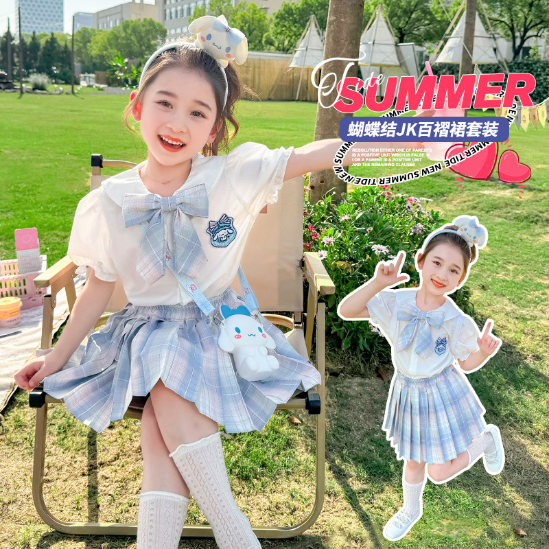 女の赤ちゃん夏半袖シナモンドッグカレッジスタイルJKスーツ子供カレッジスタイルかわいいシャツプリーツスカート2点セット