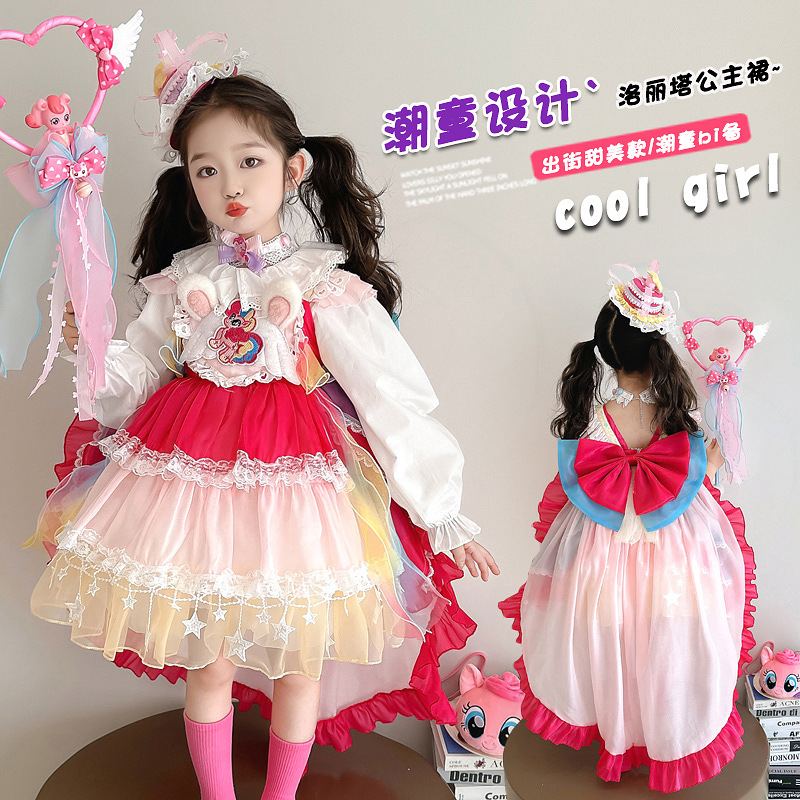 女の子ワンピース春装2025新作子供春秋洋気ロリータ赤ちゃんクロミプリンセススカート