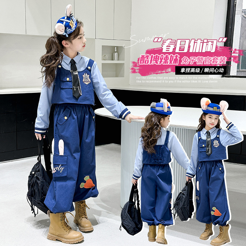 女の子セット春秋2025新型子供ウサギ警察官服女の子春服学院風運動三点セット