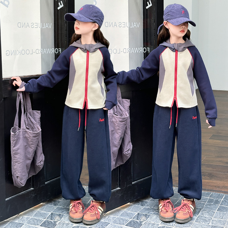 女の子の秋冬にベルベットのコート野球服2024の新しい子供のスポーツファッションジャケットの女の子の上着が湿っている