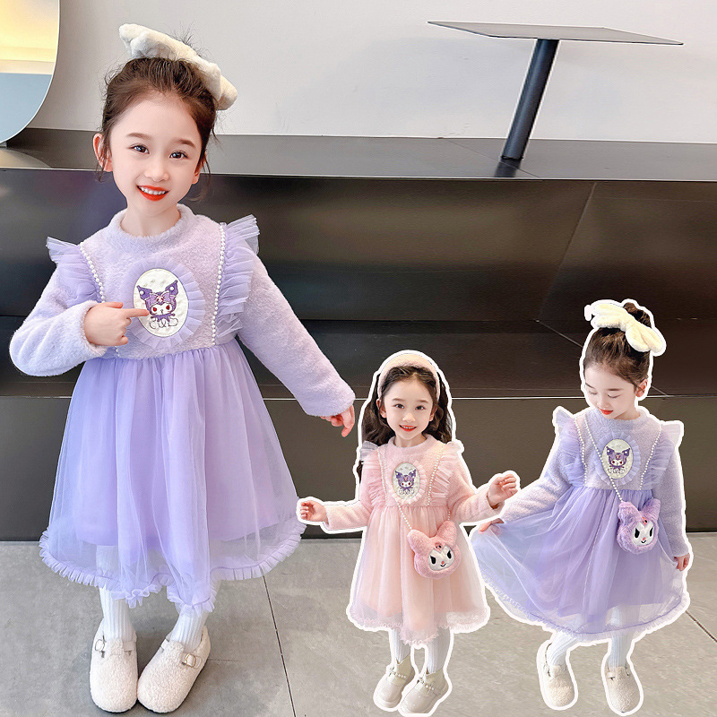 女の子の洋風の王女のベルベットの秋冬のワンピースの女性の赤ちゃんの2024の新型のアニメのスカートは冬の服装の潮を厚くします。