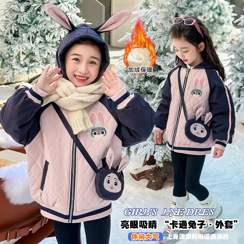 女の子のウサギの警察官三合一突撃服秋冬スタイルの子供の洋風フード付き女の子の冬服コート