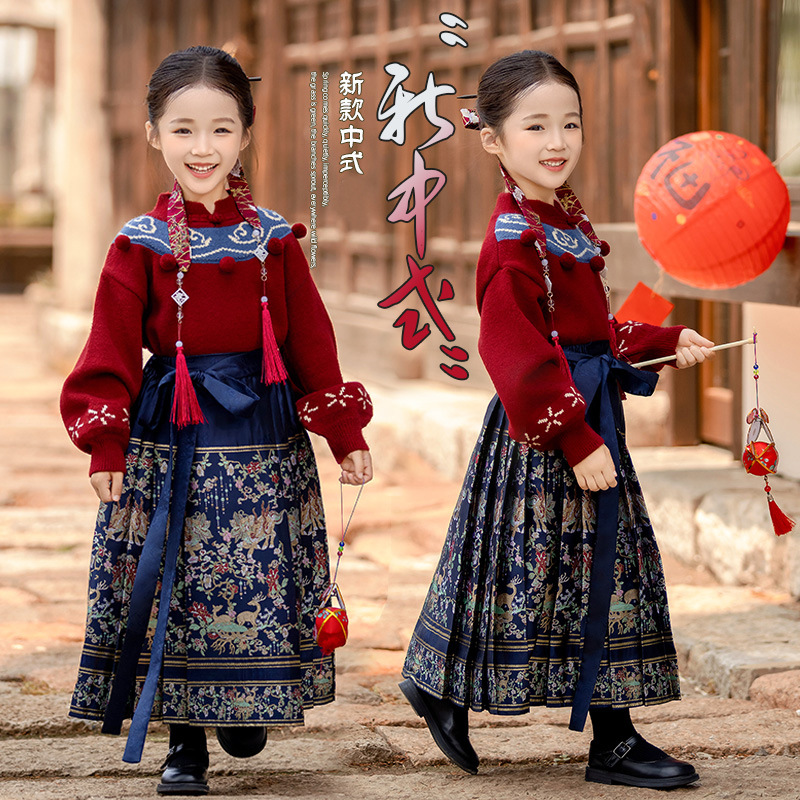 女の子の中国風の赤いセーター2025新型の女の子の秋冬の新しい中国式のニットの上着の子供の新年の服