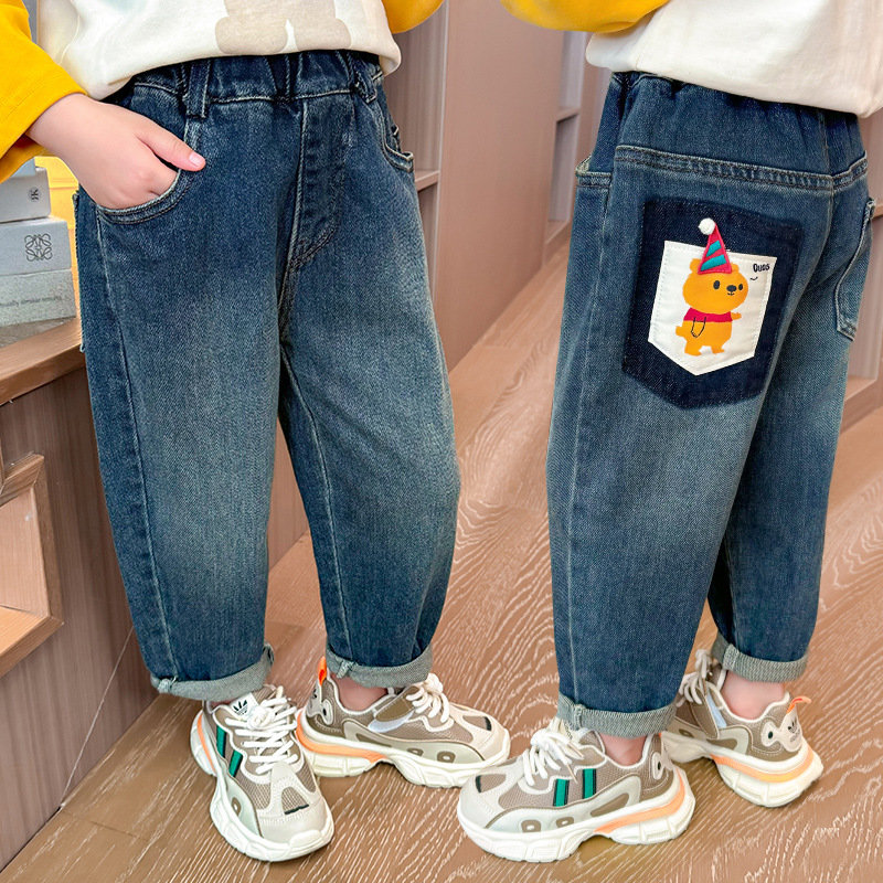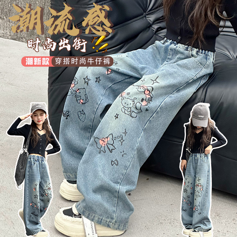 女の子の広い足のデニムのズボンの春と秋のの新型の秋のスタイルの洋風の流行の赤ちゃんのストレートな筒の秋の子供の秋の服