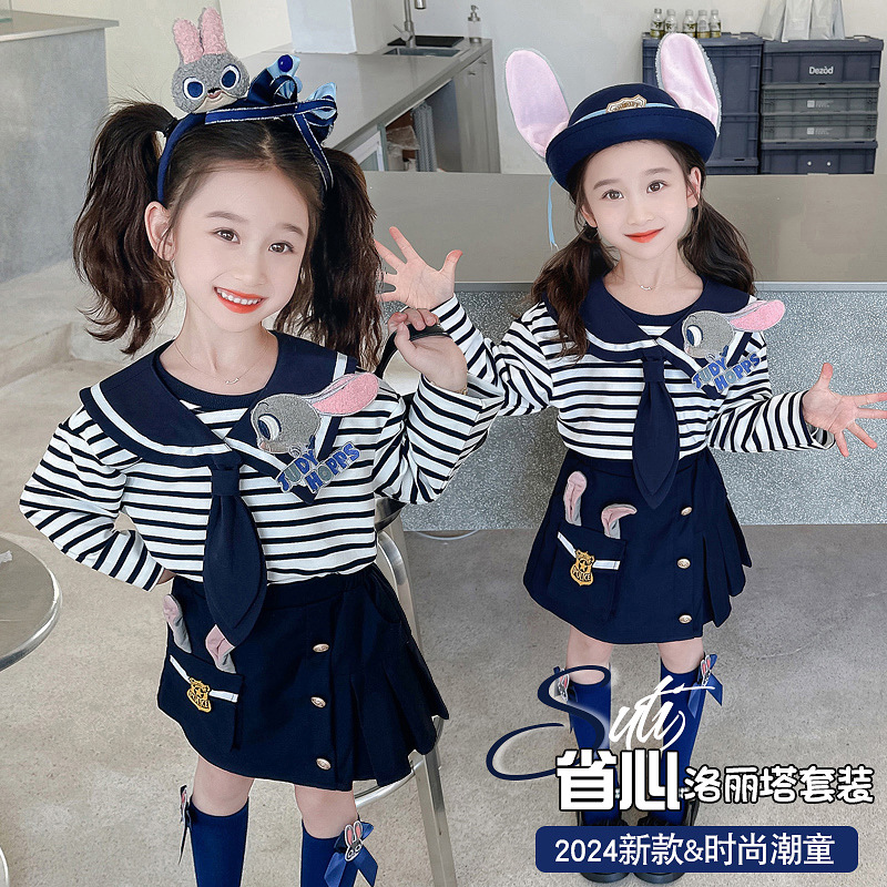 女の子のウサギのストライプjkセット春秋の金2024の新型の子供の洋風の女の子の秋の装の学院の風