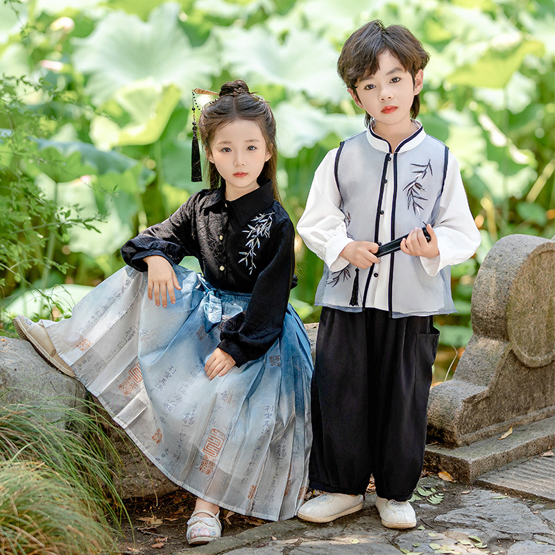 男の子用漢服秋冬2024新作子供用古風儒雅国学服セット女の子用冬服新中式唐服