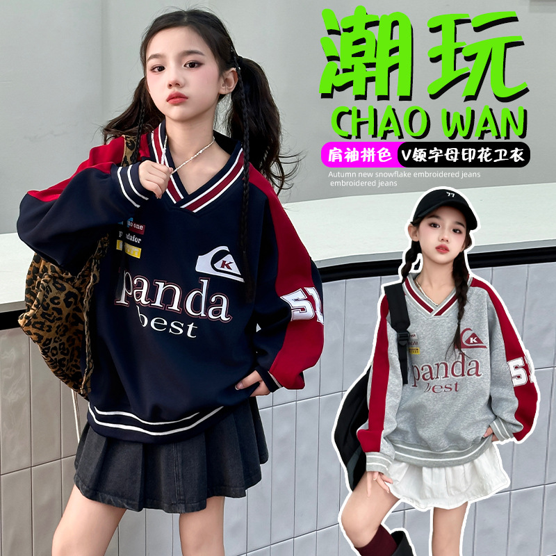 女の子のスーツ春秋の女の子のネットの赤い揚げ街の2つのセットの2024の新型の女の宝の韓国版の洋気の子供の秋の服