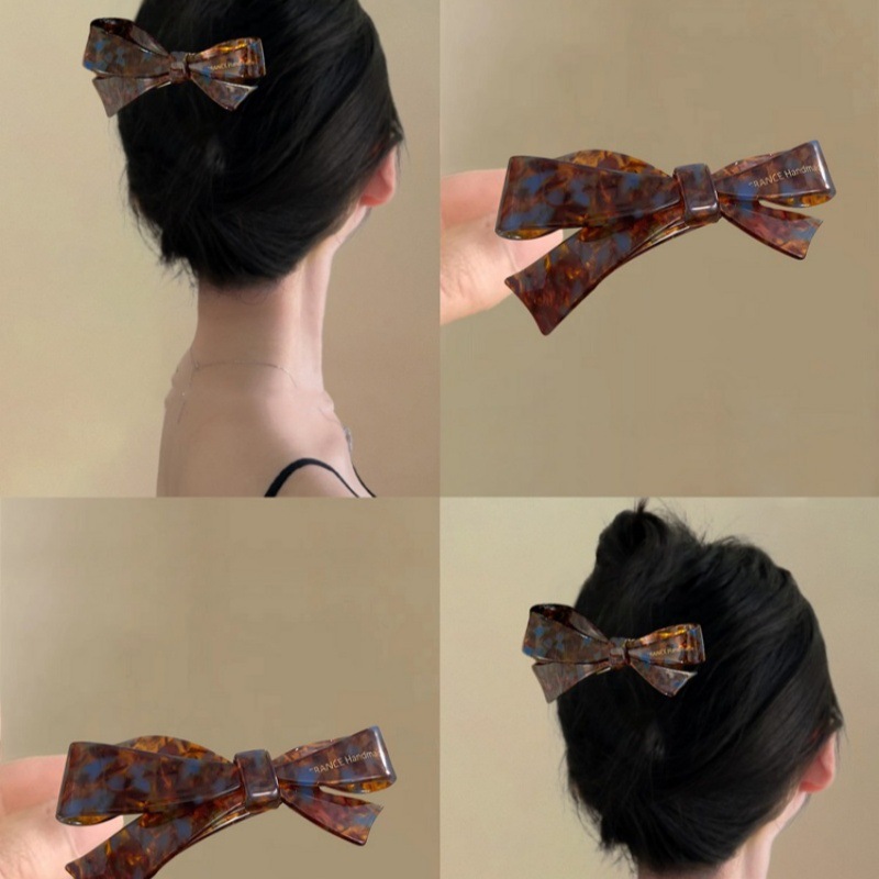 優雅なブルーブラウン調 ~ 酢酸高級感ヘアピン2024新製品後脳大収発バネクリップ一字クリップ髪飾り