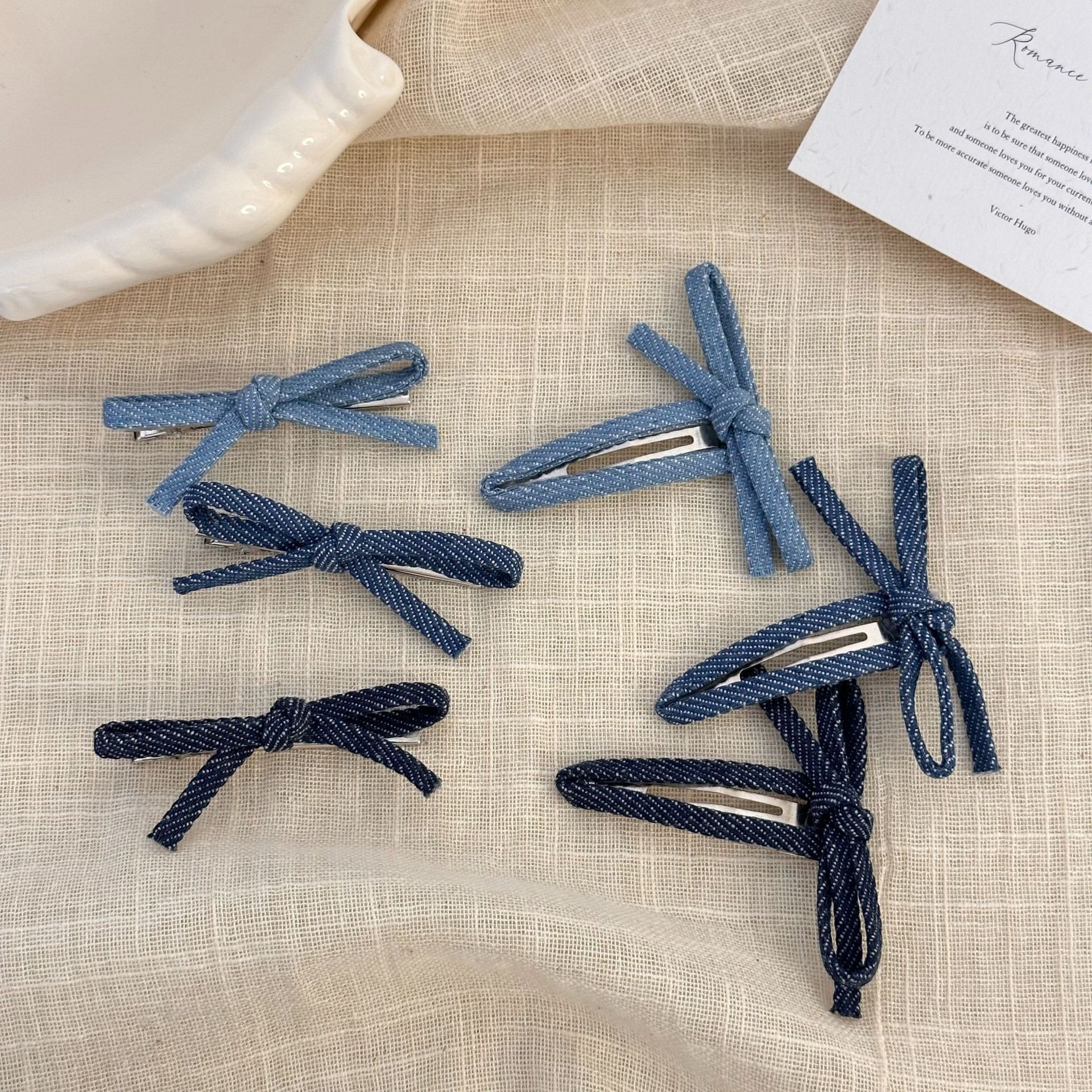 蝶結びのデニムのヘアピンの女性2024の新型の高級感の一字で前髪を挟みます。