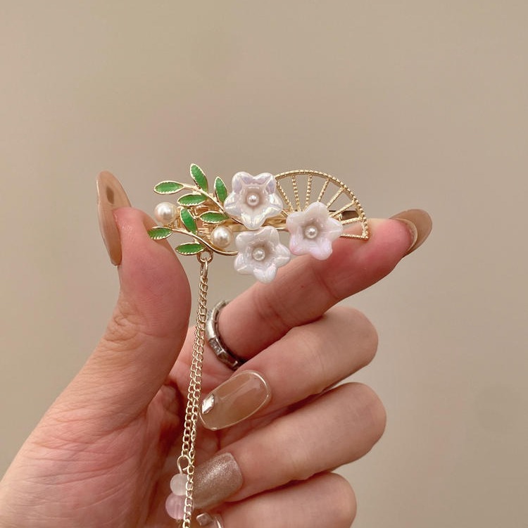 新中国風の花のカモの口は新型の精巧な扇子の長いフリンジヘアを挟んで後頭部の髪の毛のサイドを砕きます。