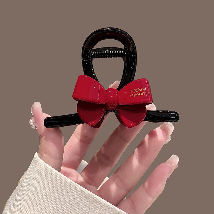 赤い蝶結びのヘアピンの女性の後頭部のかわいい髪のクリップの中号のシンプルな気質のサメのクリップの高級感