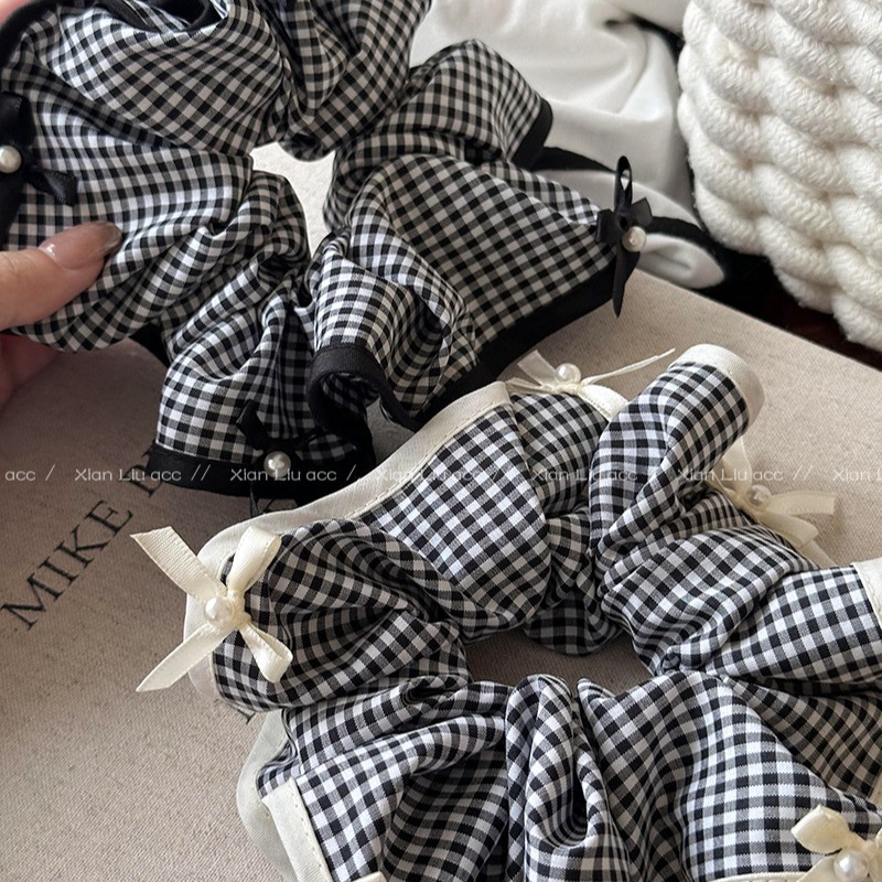 蝶結びの格子の大腸の髪の輪のひもの女性のネットの赤い2024の新型の高級感は髪の毛の髪を刺します。