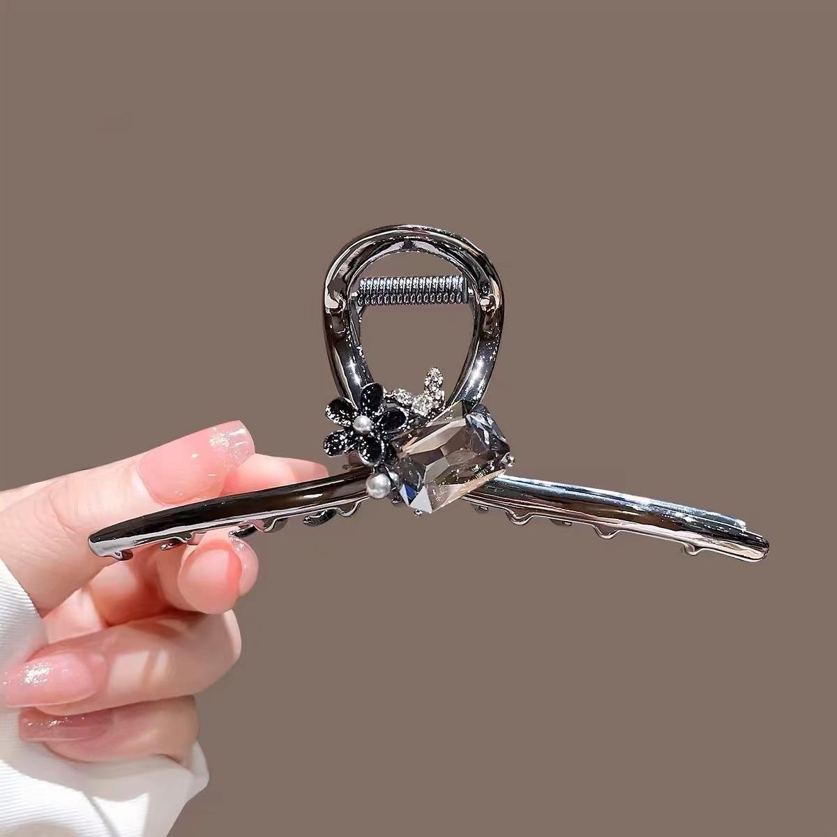 デザイン感小衆黒水ドリルサメクリップ大ヘアピン高級感後頭部金属クリップシンプルなヘアピン