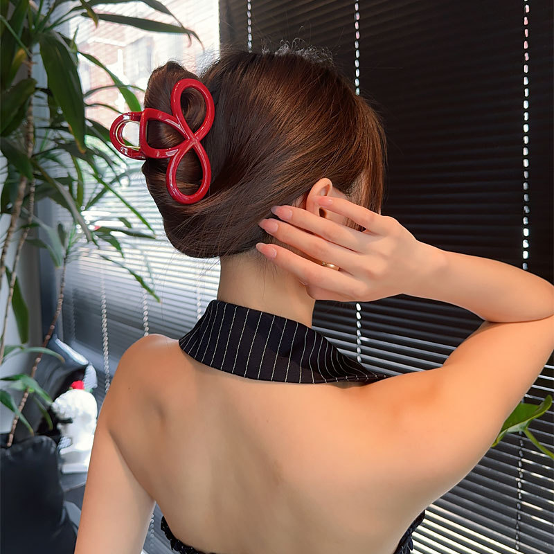 フランス式の赤いつかみ ~ 蝶結びのアルファベットの後頭部はサメの挟みのレトロな大衆の設計のギャルのヘアピンを出します。