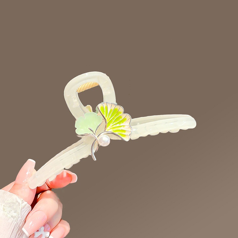 緑のイチョウの葉は女性の夏の新型の後頭部を挟んでサメのクリップの髪の量が多いです。