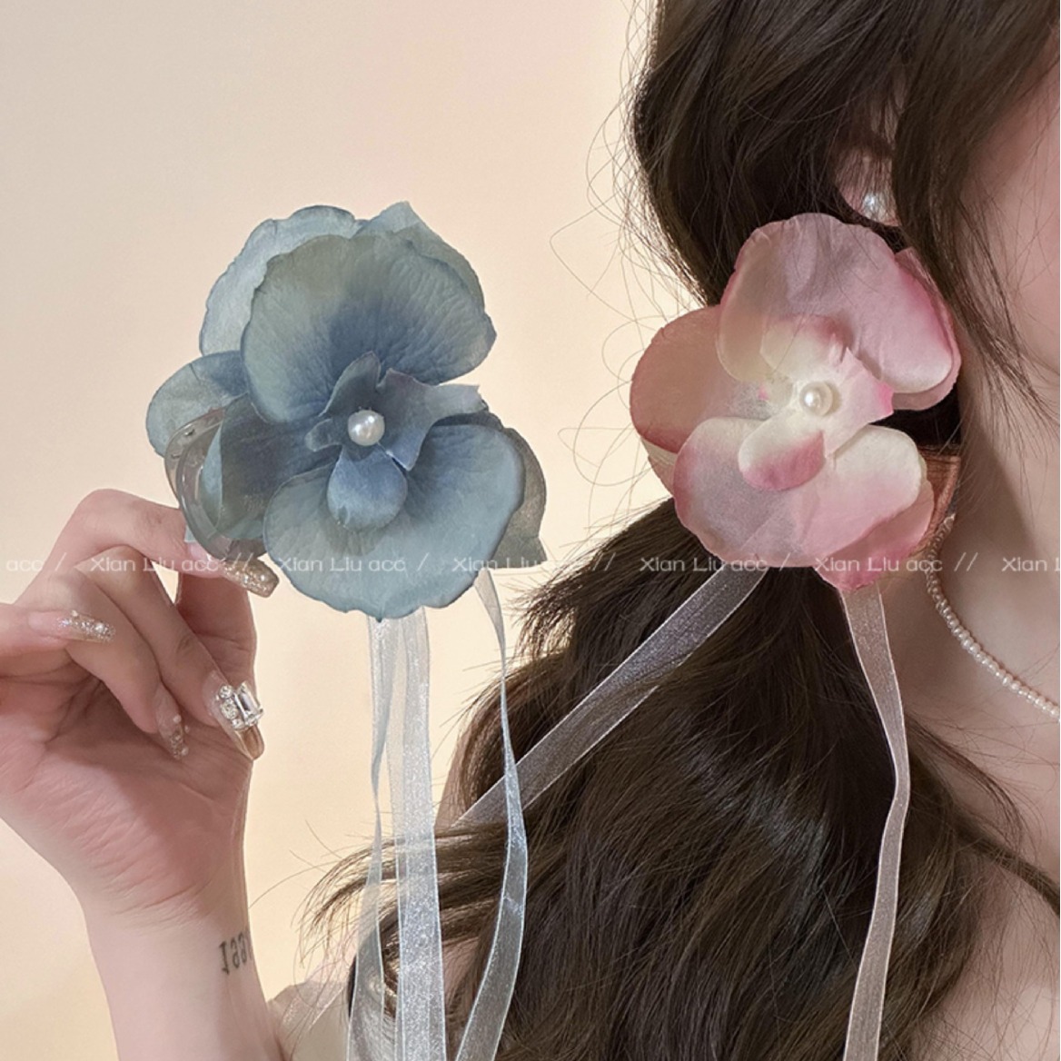 超仙のリボンの胡蝶蘭のつかみの女性の2024新型の高級感のサメの挟みの雰囲気感は片の髪の挟みを超えます。