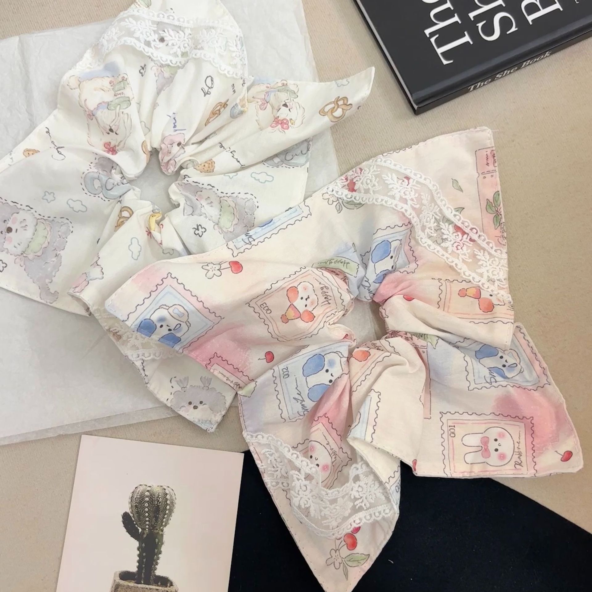 田園風小清新方形髪輪少女日系シンプル角巾大腸輪肥腸わな腸レース韓国
