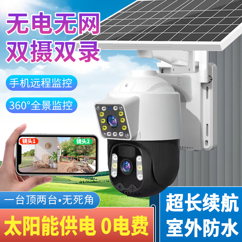 屋外4G/WiFi無線カメラhd暗視太陽エネルギー二画面監視カメラ