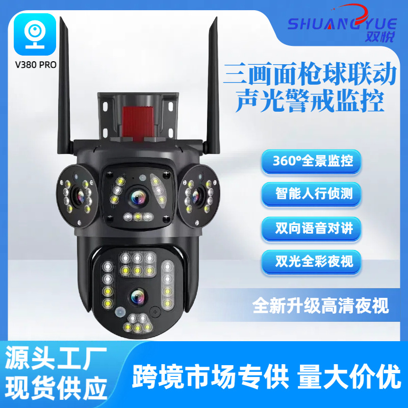クロスボーダーV380三画面カメラ360度パノラマ携帯電話遠隔家庭用ガンボール連動監視WiFi