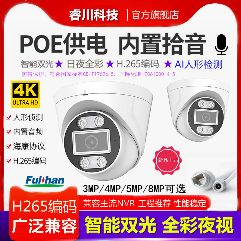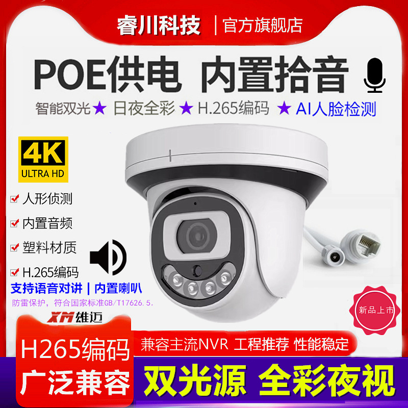 雄マイ双光500万海螺半球ネットワークモニタonvifプロトコルPOEピックアップ対談カメラ8mp