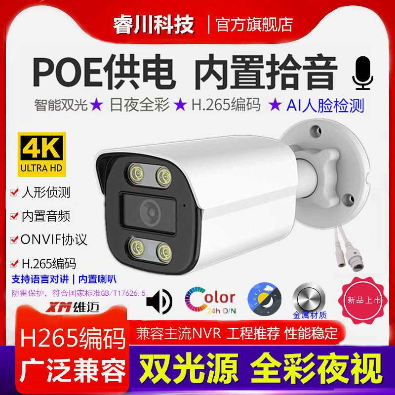 雄マイ屋外防水500万両光フルカラーネットワークモニターonvifプロトコルPOEピックアップカメラ4MP