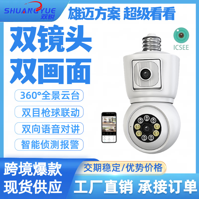 雄マイE27口金式監視二重レンズ二重画面高精細夜視フルカラー家庭用無線WiFiカメラ