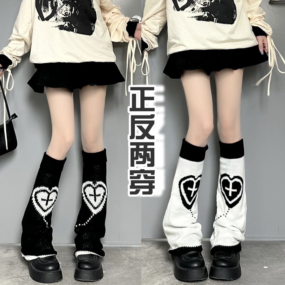 1688秋冬の両面ニットの靴下の甘い少女の愛の十字架の足のカバーはやせている保温y 2k亜文化を現します。
