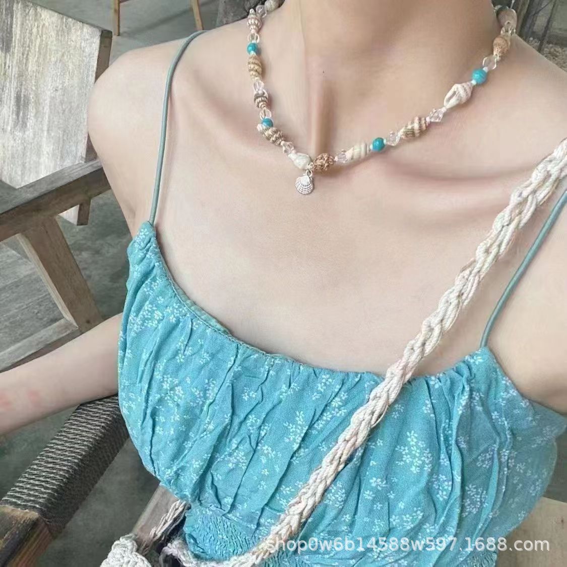 新型の爆発物のサザエの米の玉の緑の松石のネックレスのブレスレットの足は砂浜の海星のペンダントの貝殻の水晶の玉の手環をつないでいます。