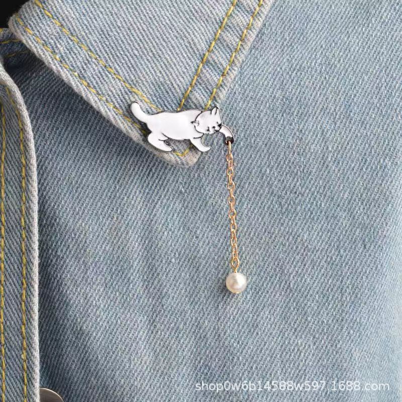Ebayアクセサリー爆発アニメファッション個性子猫真珠ブローチファッション動物服ピン新商品