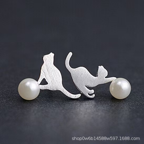 新型クロスボーダー糸猫ピアス真珠イヤリング韓国版ファッションイヤリングアクセサリー卸売りピアス子猫ピアス