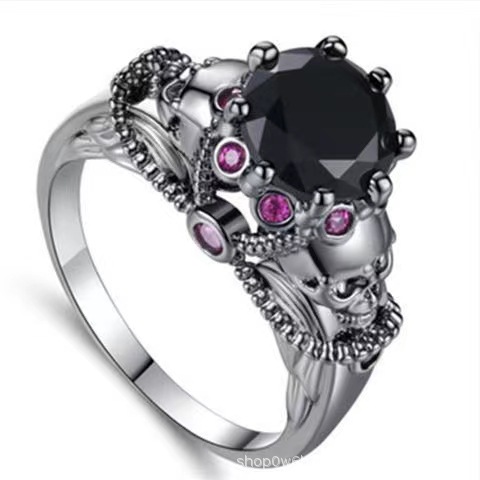 新型欧米創意スカル指輪七色宝石花個性ジルコンガラス水ドリルリングアクセサリー