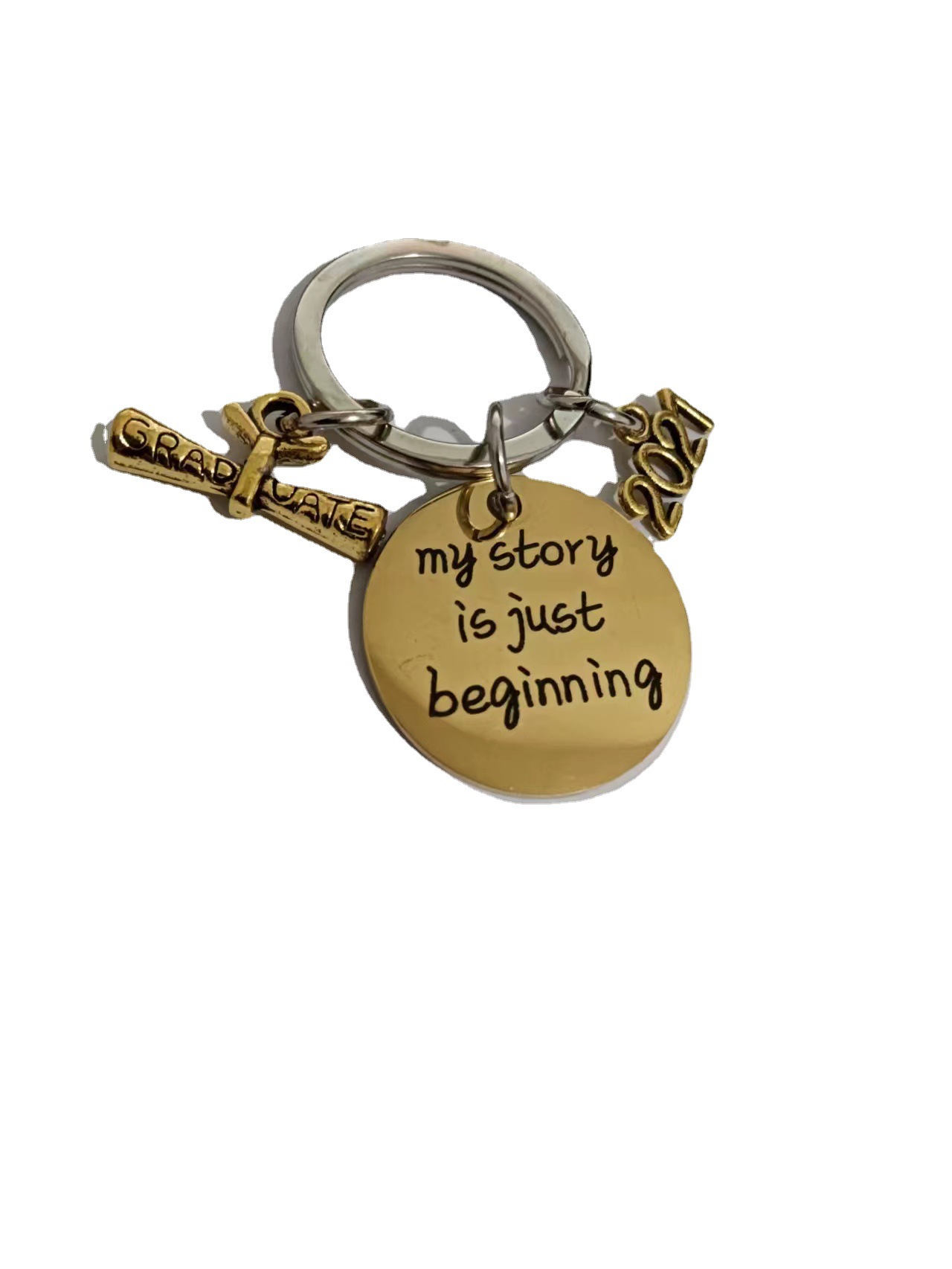 キーホルダーペンダントステンレス円形欧米クロスボーダー2023卒業シーズンプレゼント刻字キーホルダー記念