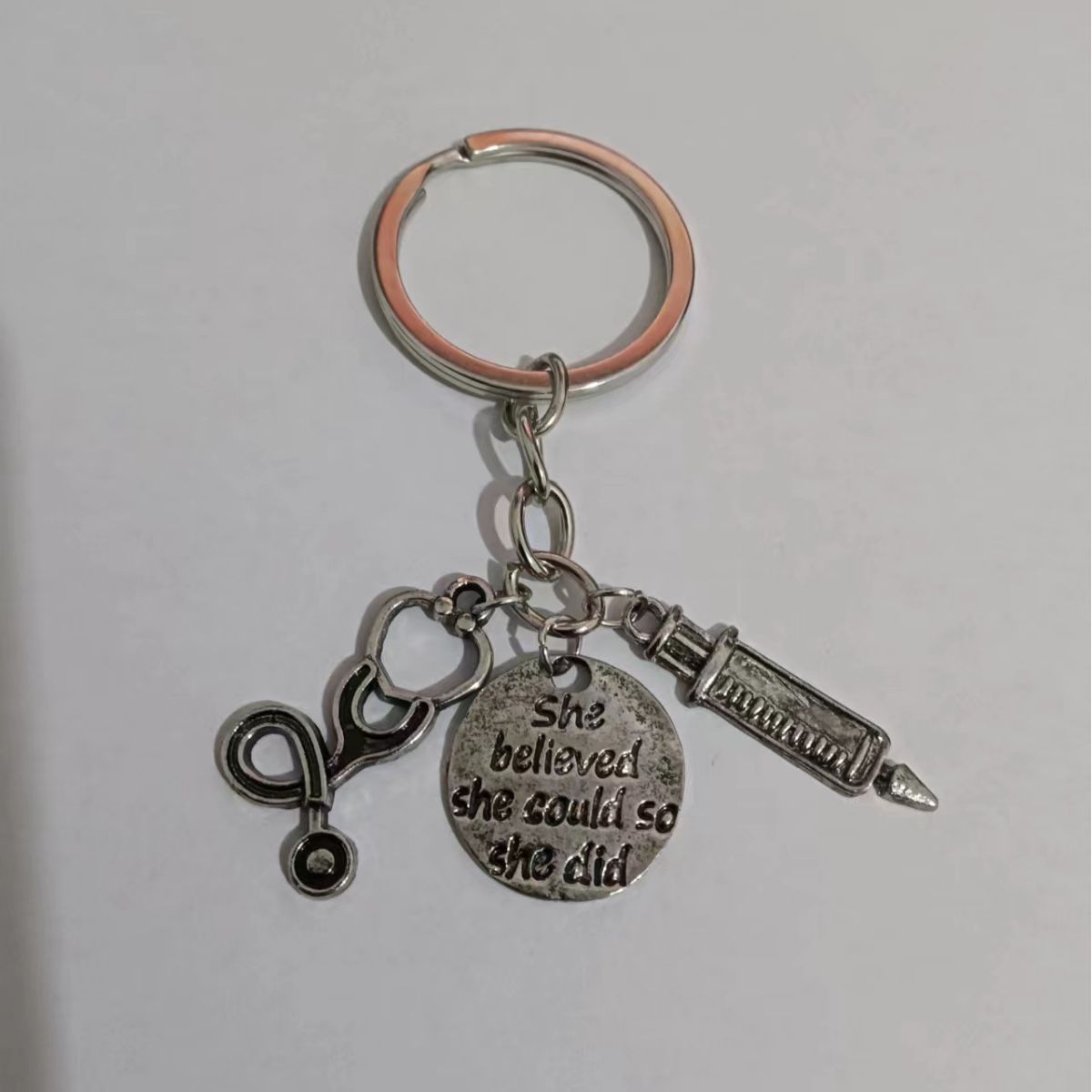 欧米の越境創意円形形看護師帽子医師注射器聴診器の鍵は医療のペンダントを掛けます。