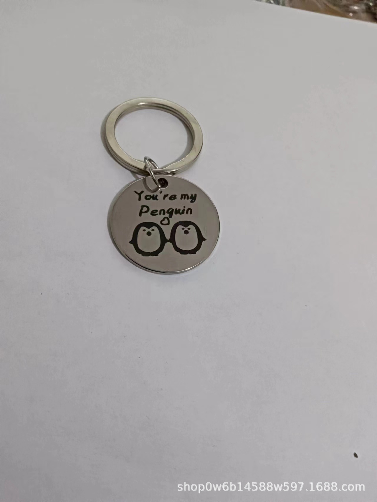 国境を越えて人気のあるペンギンyou're my penguinステンレスカップルのキーホルダーレーザータグ円形