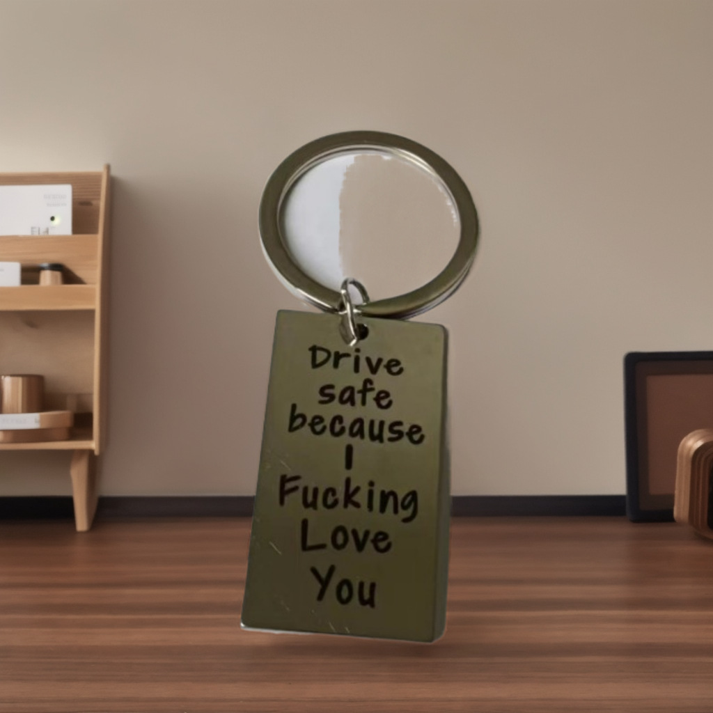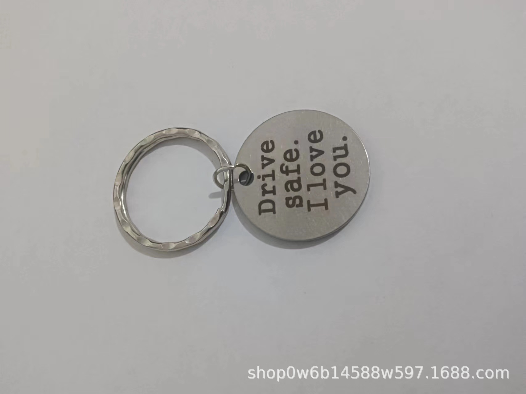 親子型安全運転drive safe i love youステンレスキーホルダーレーザー印字金属