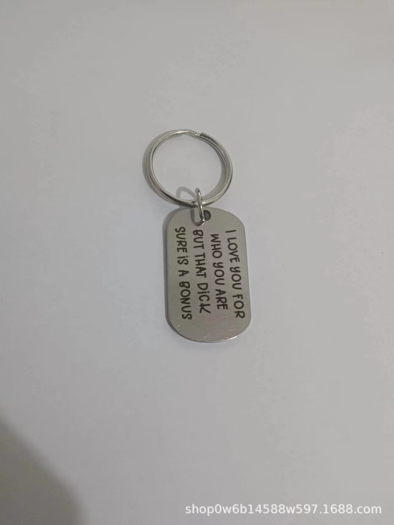 I love you for who you are .. dick/pusyカップルステンレスキーホルダー身分札