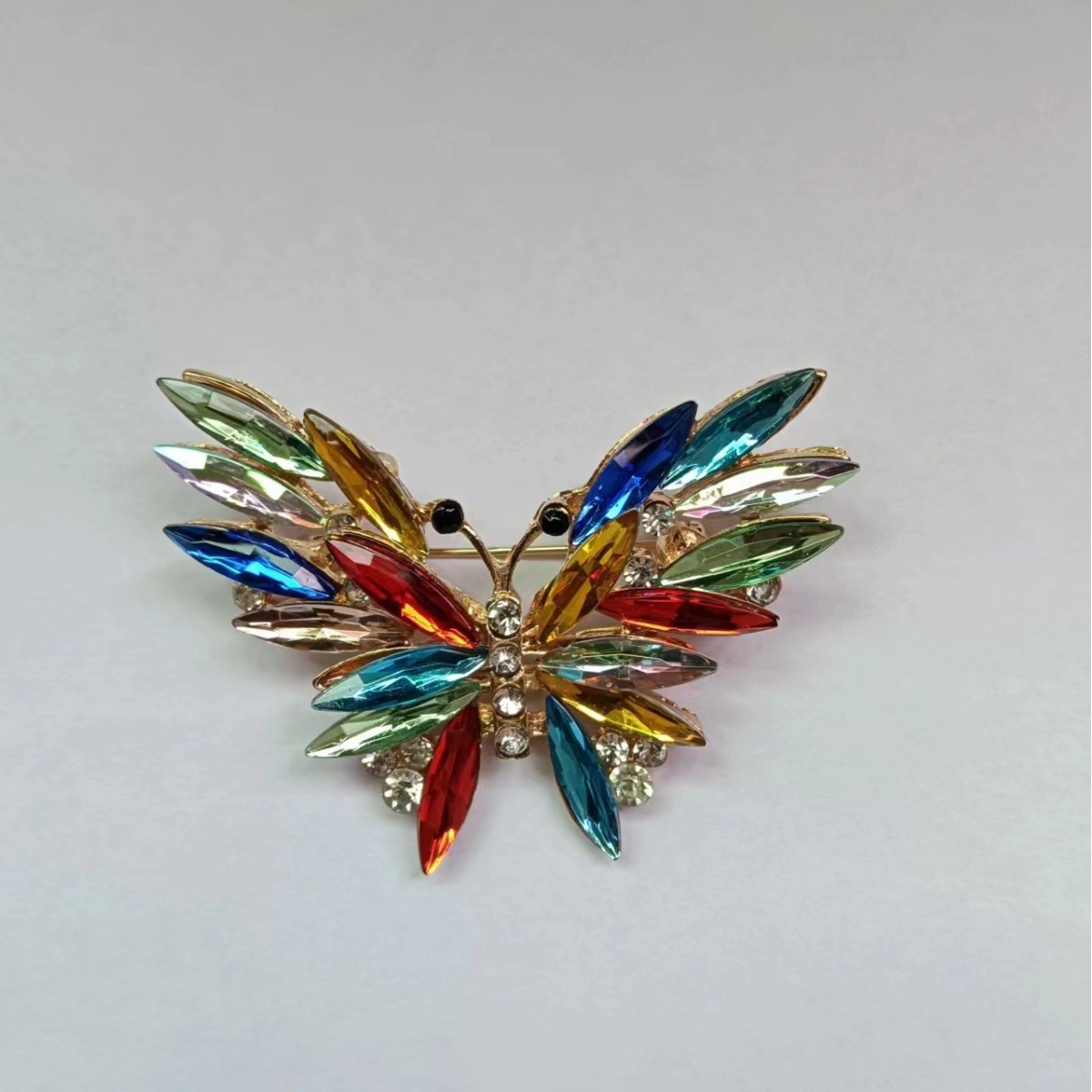 韓国の水晶の蝶のブローチの大気の服装は高級な胸の花のスーツのピンの部品のメーカーを飾って直接販売します。