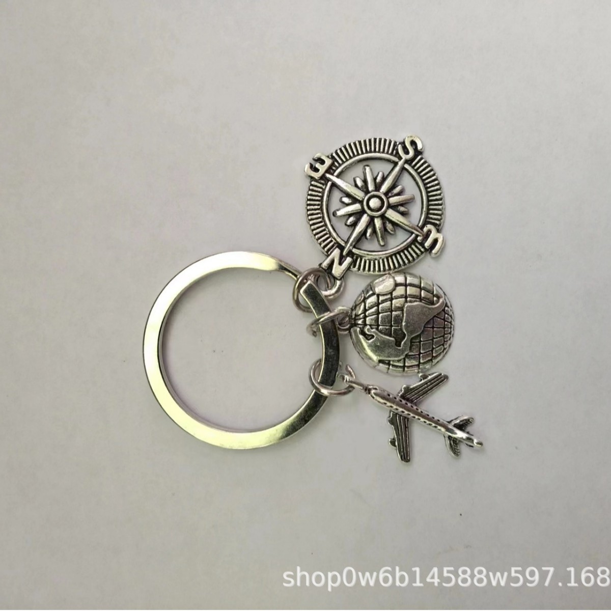 欧米の流行の合金の飛行機の羅針盤の友情のキーホルダーの地図の旅行の地球のキーホルダーのペンダントの直接販売