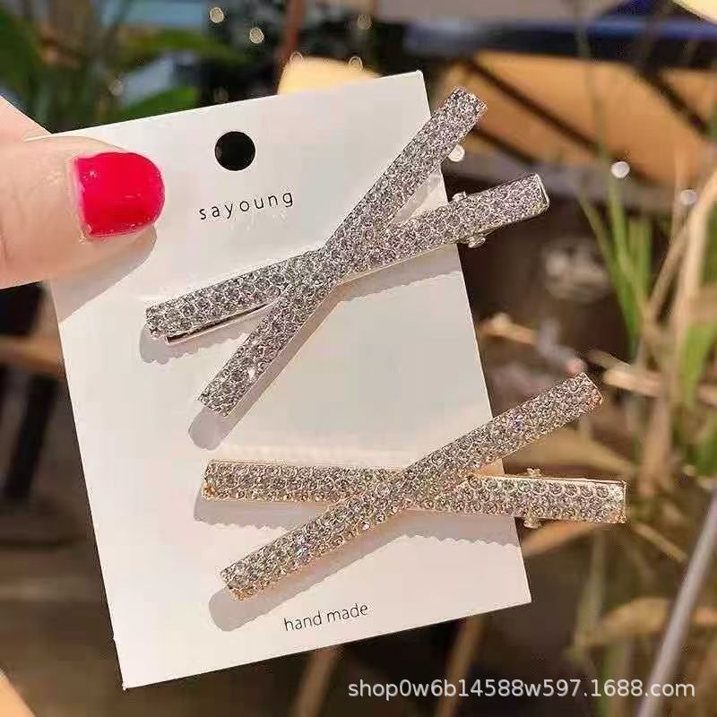 2023新型ネットレッドウサギ耳ins少女合金ラインストーン髪クリップ側辺海星前髪髪髪飾り
