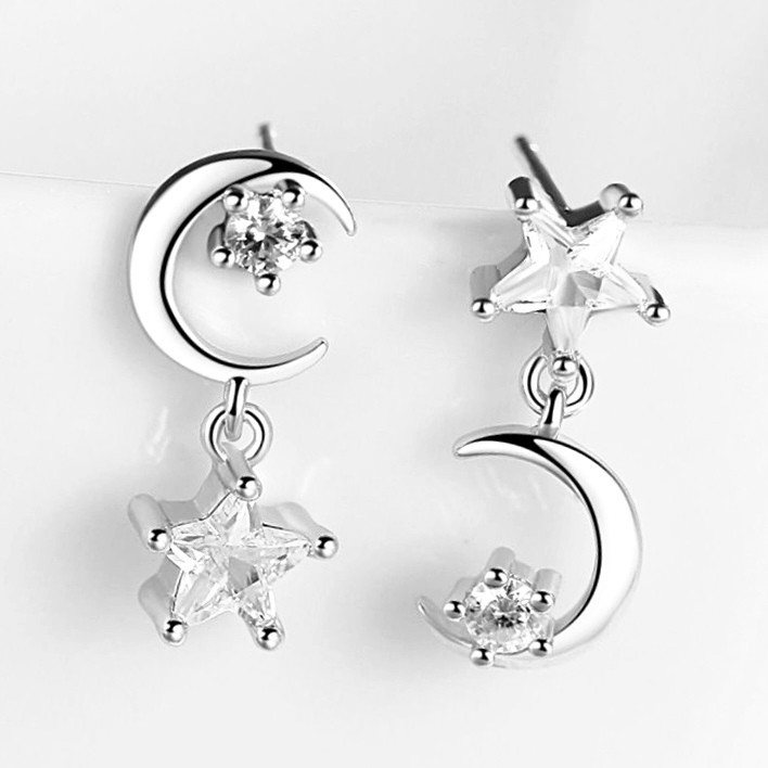 新しいヨーロッパとアメリカのスタイルの月と星のダイヤモンドがちりばめられたイヤリング、ファッショナブルな非対称デザイン、五芒星のイヤリング、耳穴の小さなデザイン