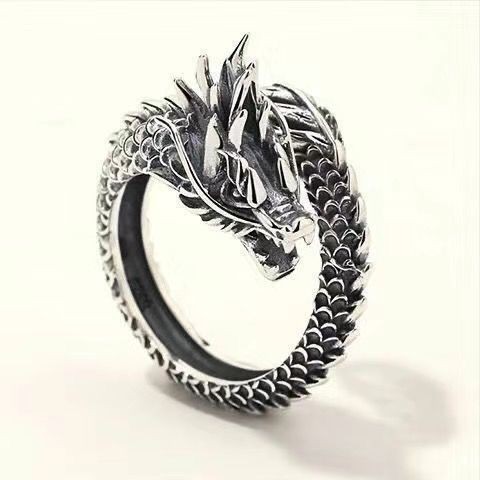 欧米のかわいい誇張したショパンの指輪の個性のレトロな動物の竜の独身のロックの人差指の口の潮男の指輪