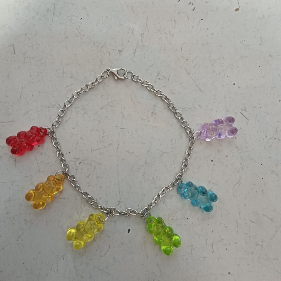 ヨーロッパとアメリカの新しい甘いキャンディーカラーのかわいい人気のクマのアンクレット、誇張された太いチェーン、カラフルなクマのペンダントジュエリー