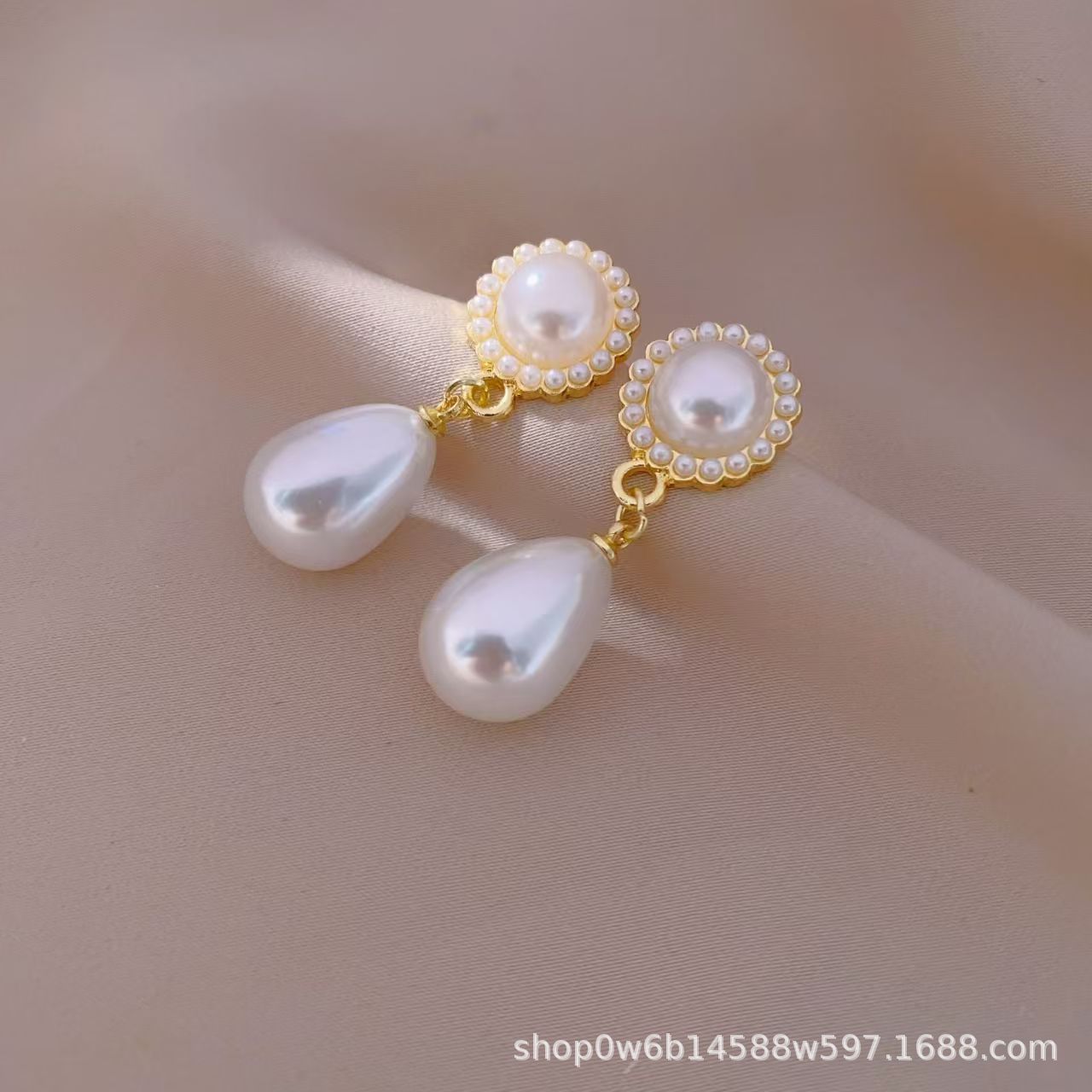 新しいウォータードロップパールイヤリング、宮殿スタイルのひまわりイヤリング、韓国風のシンプルな気質、多用途でファッショナブルなイヤリング