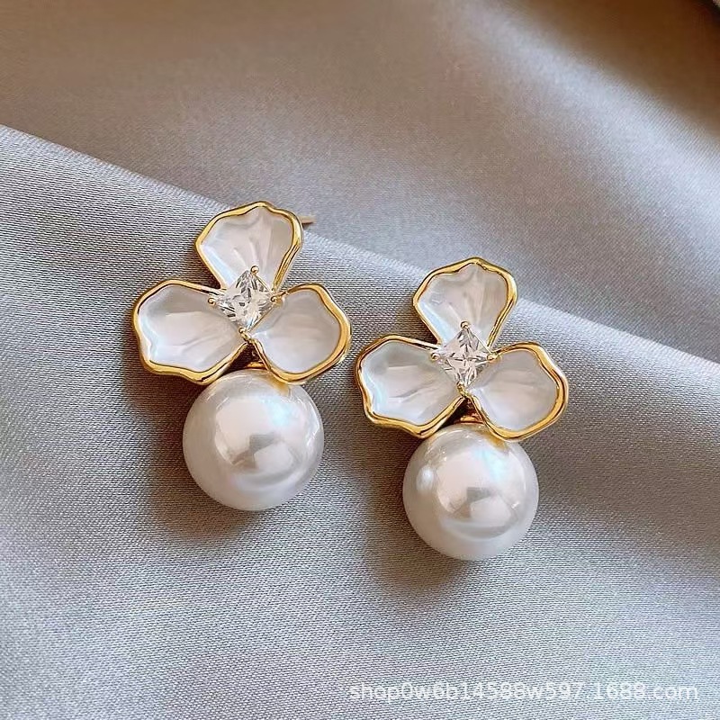 新しいフレンチレトロファッションダイヤモンドフラワーパールイヤリングファッショナブルなイヤリングエレガントな気質の新しいイヤリング