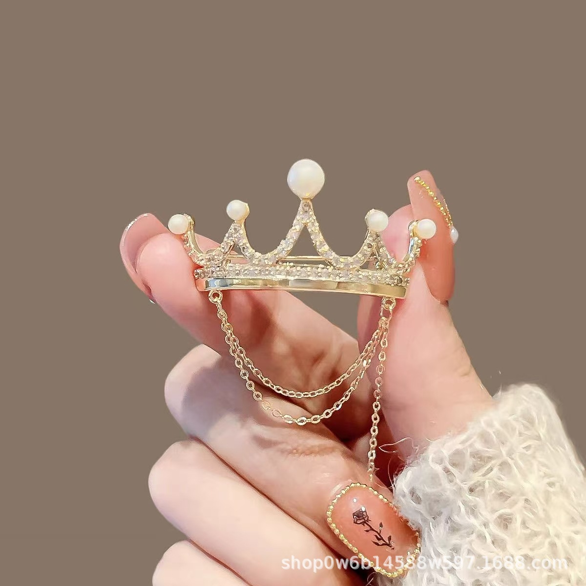 クラウンシェイプのラインストーンビーズブローチ、高級フェミニンタッセルコサージュ、絶妙なパーソナライズされたピン、男性用スーツアクセサリー