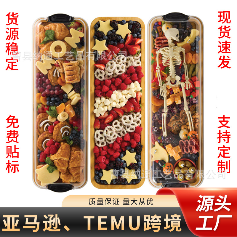 蓋付き既製木製デリプレート、クリエイティブパーティースナックプレート、キッチンコンパートメントフルーツステーキ木製トレイ
