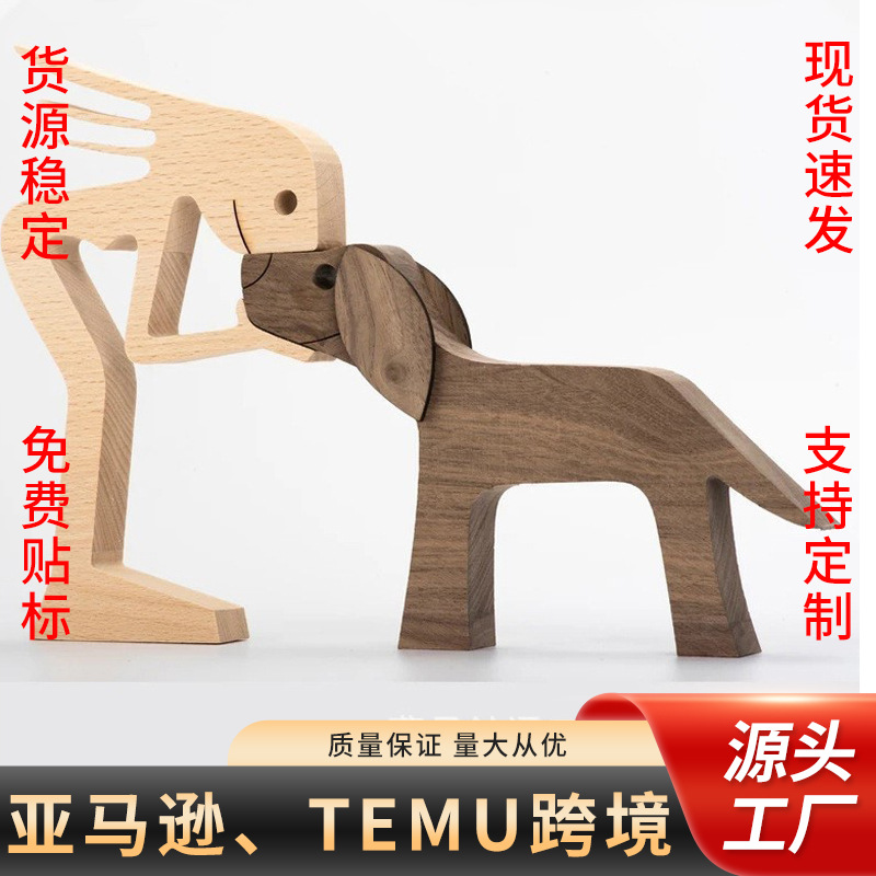 新商品の子犬の家族は木の工芸品を飾って、テーブルの上に工芸品を飾って、創意的に動物の置物を飾っています。