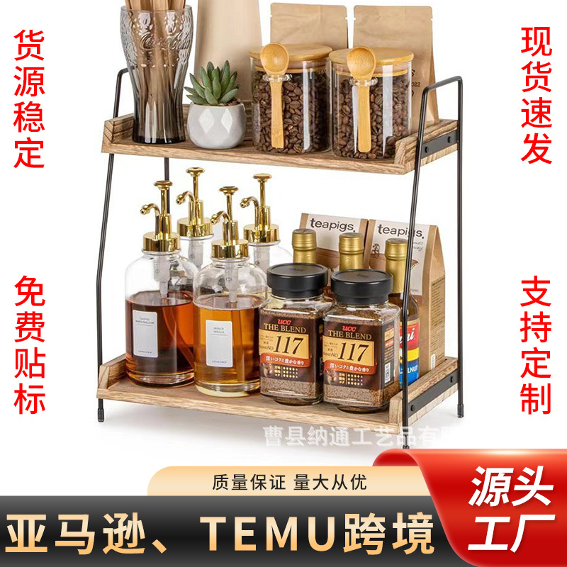 木製キッチン調味料棚二重棚はキッチン調味料収納寝室化粧品整理棚に適している