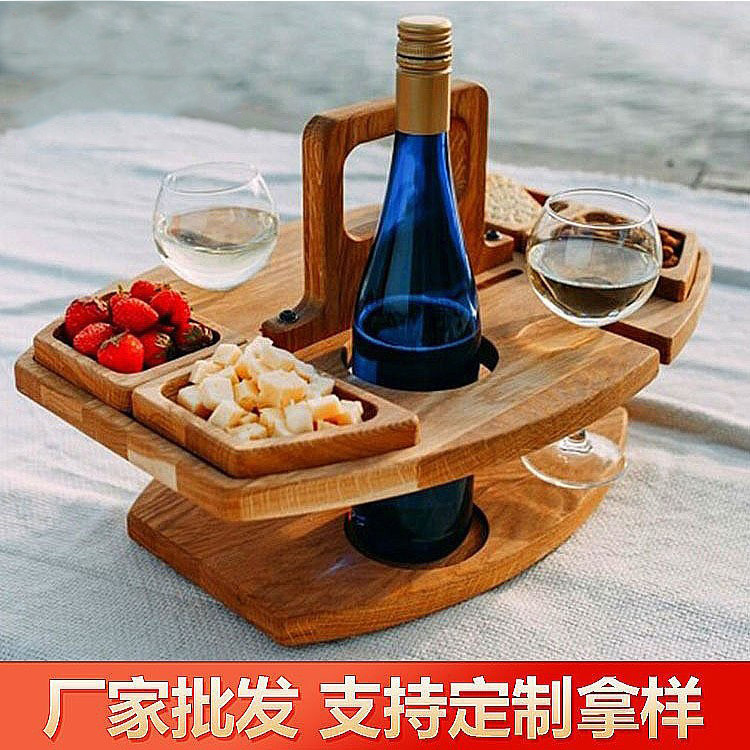 メーカー現物木製ポータブルテーブルカジュアルスナックテーブルナッツスナックプレートフルーツテーブル屋外ワインラック卸売